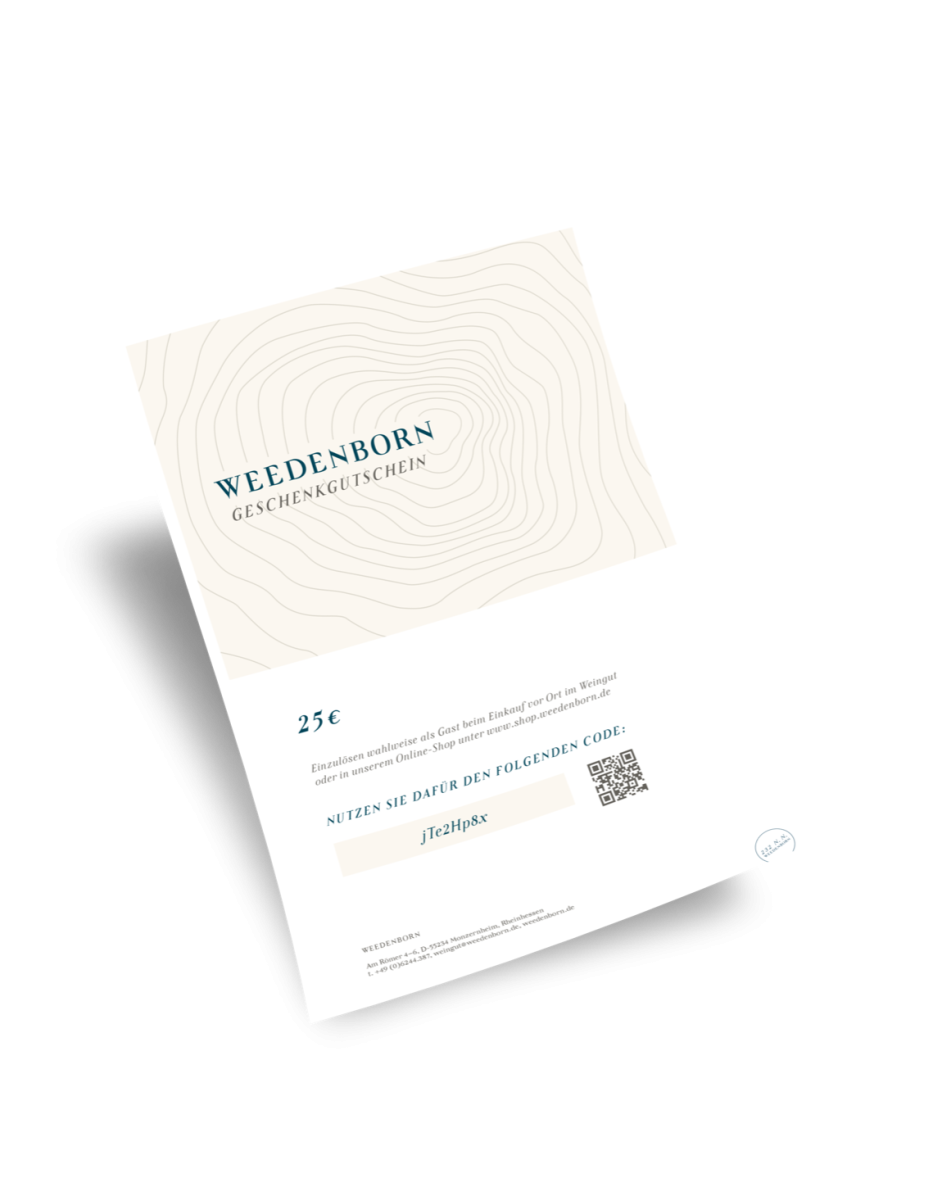 Unser Weedenborn-Gutschein kann im Webshop oder auf Weedenborn in unserer Vinothek eingelöst werden.